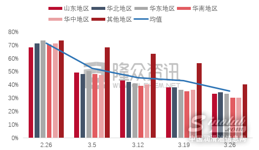 2021一季度润滑油终端用户采购量较去年同期大幅较少,主要因素为3月份基础油市场价格一直处于较高水平,润滑油工厂生产成本增加,因此陆续上调价格,以此来维持利润空间,因此使得终端用户采购减少。而去年因疫情因素,3月份企业陆续复工,加之价格相对较低,因此终端用户对润滑油的采购量增长明显。1月份因气候原因防冻液的采购量较大,占当月润滑油总采购量的43.2%,而进入二月随着气温的逐渐升高,防冻液的采购量大幅降低。