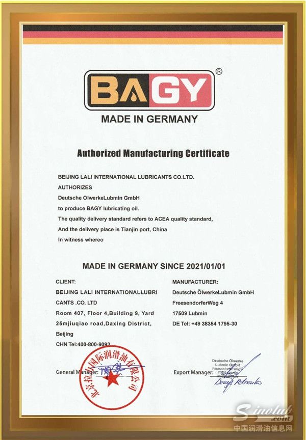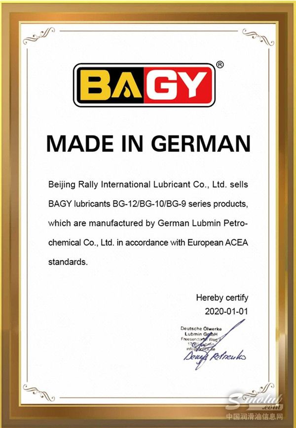 专注大马力赛车润滑油的BAGY(巴极)润滑油来自于德国卢布明石油化工有限公司(以下简称“卢布明公司”),如今,终于正式进入中国市场。卢布明公司是一家独立的润滑油制造商,在润滑油行业享有举足轻重的地位,专注于高端润滑油技术研发以及OEM制造等领域,拥有全球多年的市场开发及技术经验,能够为不同行业的应用提供全面的润滑方案产品。据介绍,卢布明公司生产品已经通过全球众多知名汽车制造商的原厂认证,例如奔驰、宝马、大众、沃尔沃、路虎、捷豹、康明斯、曼等质量体系认证。