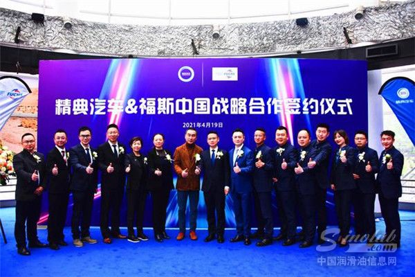 2021年4月19日,四川精典汽车服务连锁股份有限公司(以下简称精典汽车)&福斯润滑油(中国)有限公司(以下简称福斯中国)战略合作签约仪式在成都举行。福斯中国销售战略高级副总裁于志和、车油零售销售副总裁高雪梅、车油零售中区销售总监马红,精典汽车副总经理唐智勇、精典快修项目公司总经理唐明、精典汽车财务经理邓奎出席本次战略签约仪式。