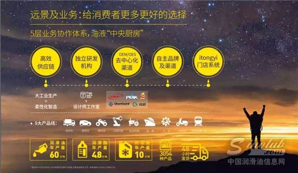 中国汽后油液需求拐点在2019年已开始出现,“供应重构、产销分离”将成为趋势。为了解决破局成长的问题,统一提出了自己的以5层业务协作体系,打造油液“中央厨房”的愿景。