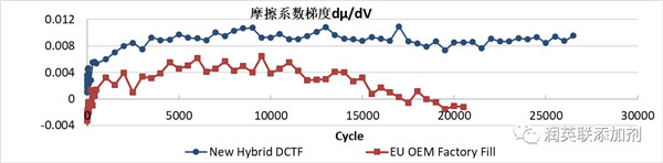 润英联根据数十年来在DCT油品添加剂领域的积累,结合近年来在新能源传动系油品的研发结果,开发了下一代湿式双离合变速箱油品添加剂技术。此项技术在研发阶段进行了大量的台架模拟试验验证了其卓越的防抖耐久性,良好的齿轮保护,优秀的抗氧化性能。