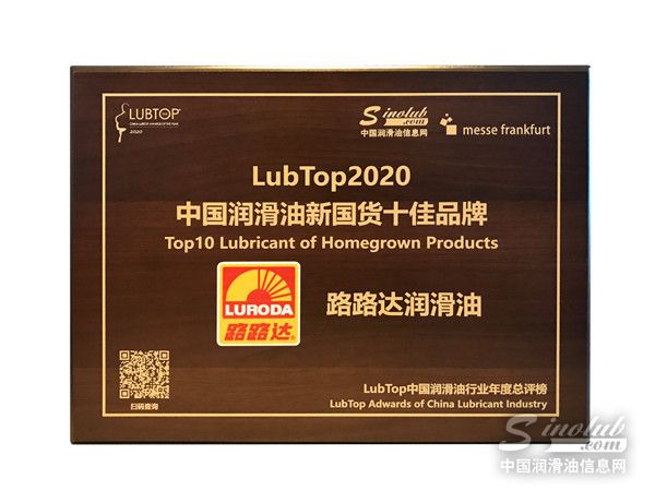 路路达润滑油荣获“LubTop2020 中国润滑油新国货十佳品牌”奖