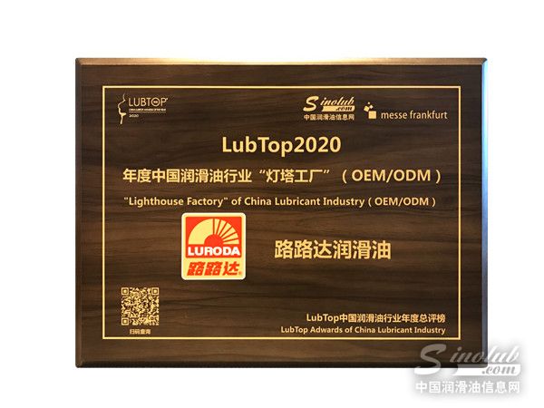 路路达润滑油荣获“LubTop2020 年度中国润滑油行业‘灯塔工厂”奖