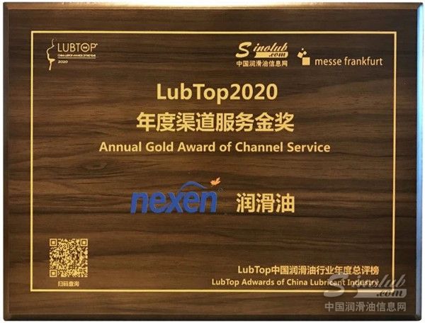 尼克森荣获“LubTop2020年度渠道服务金奖”