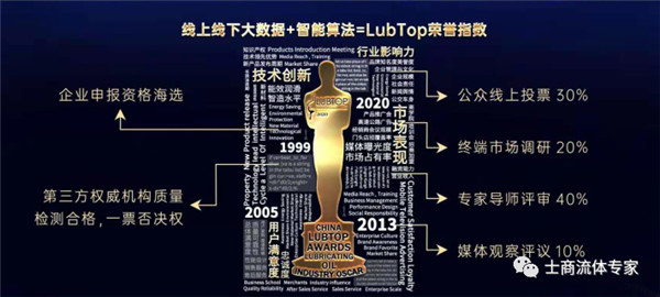 LubTop年度总评榜始于2013年,至今已成功举办七届,是润滑油产业链最具规模和影响力的全国性评选活动,美孚、壳牌、嘉实等国际巨头与中国主流品牌深度参与, 是品牌品质和行业地位的权威见证!