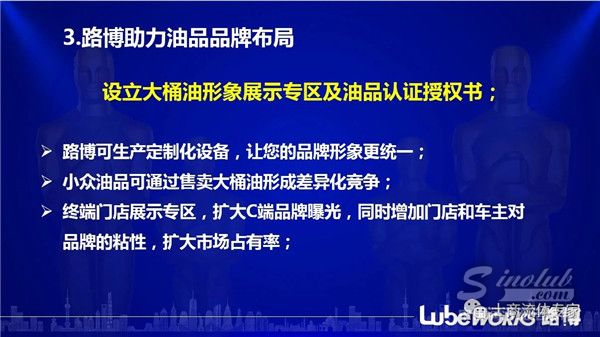 业界人士表示,润滑油供应链优秀的品质和服务是品牌卓越表现背后的巨人,他们默默地推动中国润滑油产业的发展,是行业的“隐形冠军”;现在润滑油企业都开始重视自建门店体系,士商路博作为中国润滑油行业加注设备的供应商,以其智能化的产品有效实现了大桶油的管理与控制,配合润滑油企业给终端门店提供一站式的解决方案,在润滑油行业获得大力支持。