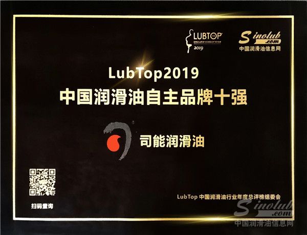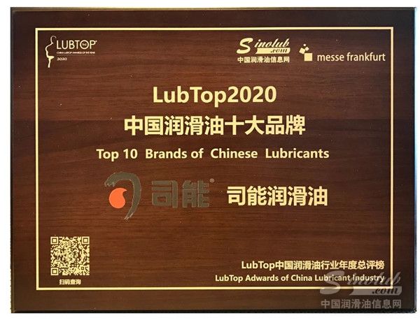 荣耀揭榜 | 司能石化荣获LubTop2020中国润滑油十大品牌称号