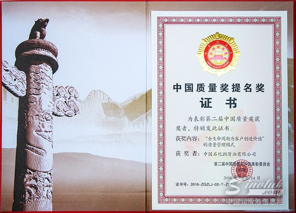 凭借“每一滴油都是承诺”质量态度,中国石化长城润滑油获得了社会各界的认可。曾经先后荣获中国质量领域最高奖项“中国质量奖提名奖”,由中宣部、国家发改委颁发的“诚信之星”称号,树立了润滑行业质量标杆。
