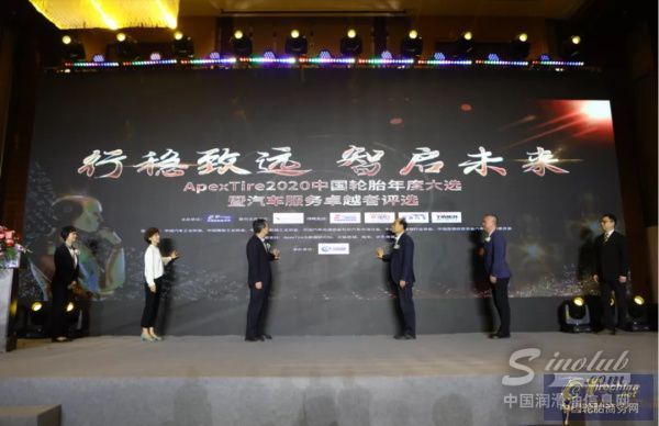 中国汽车工业协会副秘书长、汽车后市场委员会理事长师建华、中国工程机械工业协会副秘书长王金星、中国连锁经营协会副秘书长、汽车后连锁委员会主任苏霜等汽车工程机械产业链行业领导与主办方、联合主办方领导和媒体代表共同揭晓ApexTire2020轮胎年度大选荣耀榜单
