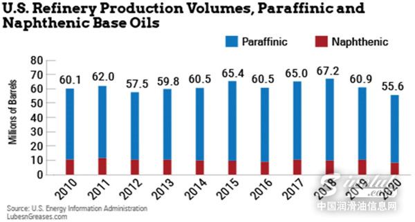 根据美国能源信息署(Energy Information Administration)的数据,美国2020年全年仅生产5560万桶基础油,比2019年的6090万桶落后约9%。在大流行初期急剧下降之后,到2020年底,美国每月基础油产量回升至2019年的水平,但是飓风和维护的转变也削弱了全年产量。