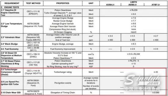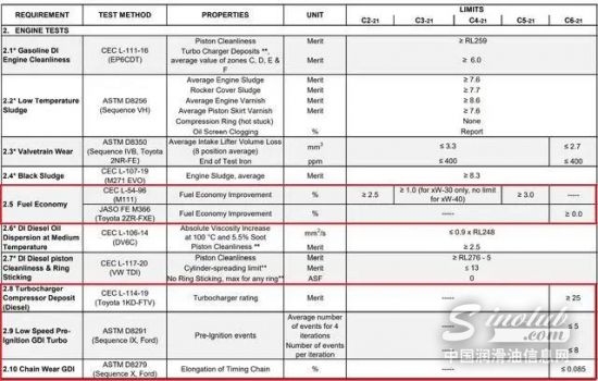 小排量涡轮增压发动机最容易出现低速早燃情况,即爆震,大家都知道加高标号汽油能缓解爆震现象,但是如果你用的机油闪点很低,那么当曲轴箱里的机油蒸汽再次进入燃烧室时,仍然有导致爆震的产生。所以,API SP和ACEA A7/B7,C6都增加了对低速早燃的评测标准,能大大减少低速早燃的发生概率。
