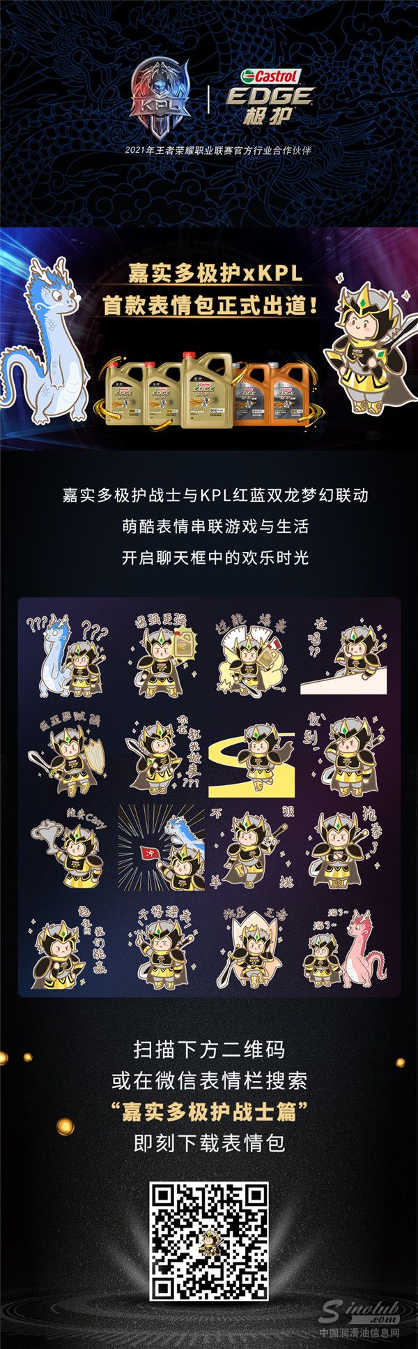 作为王者荣耀职业联赛首个润滑油行业合作伙伴的嘉实多极护为了让更多消费者感受到两大品牌所崇尚的“激发高昂表现”的共同理念,充分利用双方资源,为消费者带来层出不穷的非凡体验。近日,16款联名动态表情包正式入驻微信表情商店,搜索“嘉实多极护战士篇”即可添加使用。这组适用于多种对话场景的联名表情包生动、趣味且实用性强,相信将成为广大消费者和KPL粉丝的社交互动的新宠和“法宝”。