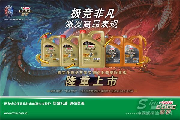 实力派的嘉实多在跨界体育营销上创新专业的态度,在研发油品上也体现得淋漓尽致。嘉实多极护作为嘉实多旗下的高端润滑油品牌,凭借着杰出的产品品质和强劲的性能表现,成为诸多追求驾驶体验的高性能车车主及驾驶爱好者的首选。拥有钛流体强化技术的嘉实多极护,能够在压力之下激发更强性能表现,并减少金属间的摩擦,满足追求驾驶体验的车主的需求。不仅如此,嘉实多极护油品抗稠83%*优于API SP标准限值,大幅超越API SP的性能要求。在今年4月底,嘉实多极护与王者荣耀职业联赛联名限量新包装隆重上市,诠释了嘉实多极护与KPL对高昂表现的不懈追求。