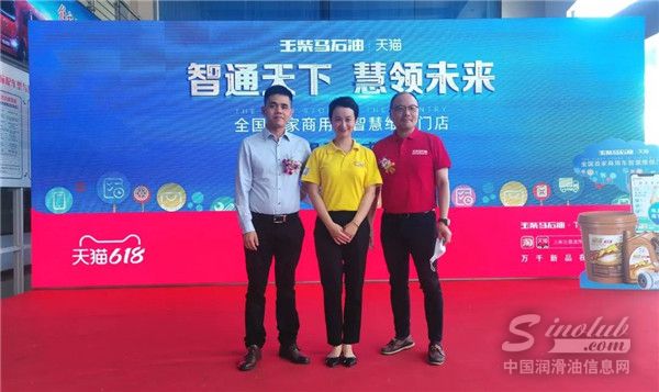 玉柴马石油总经理陈嘉琮先生(右)、阿里汽车事业部后市场平台业务负责人璁珑先生(左)与中国润滑油信息网副总经理朱文璇女士亲切合影