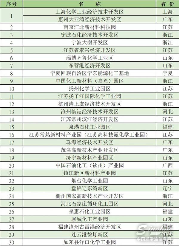 2021化工园区30强中,上海化学工业经济技术开发区和惠州大亚湾经济技术开发区并列第一,南京江北新材料科技园位居第二,宁波石化经济技术开发区排名第三。