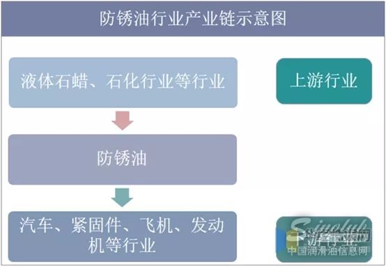 防锈油是一款外观呈红褐色具有防锈功能的油溶剂。防锈油行业产业链上游主要为液体石蜡、石化行业等行业,下游行业主要为汽车、紧固件、风机、发动机等行业。