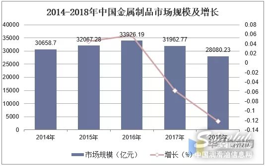 金属材料或零部件与周围介质发生化学的电化学的或物理的溶解作用而引起的破坏通称为腐蚀,习惯上把金属由于氧、水分及其他物质而引起的变色和各种腐蚀俗称为生锈或锈蚀。2018年中国金属制品市场规模为28080.23亿元,同比降低12.1%。