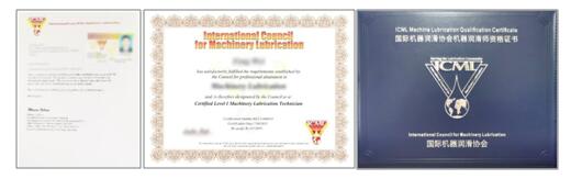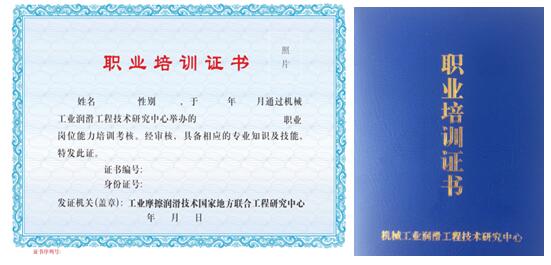 由机械工业润滑工程技术研究中心颁发的《职业培训证书》,既是能力的证明,又是国际 ICML/MLAI 考试的课时证明。