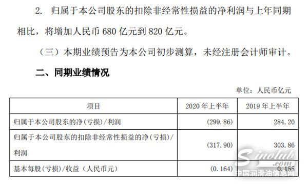 中国石化预计2021年上半年归属于母公司股东的净利润预计人民币365亿元到385亿元,较2020年同期实现扭亏为盈,增长约人民币594亿元到614亿元。