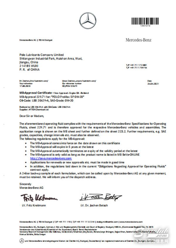 摘要:如果说MB认证被誉为润滑油标准认证的皇冠,MB-Approval 229.71最高认证则是皇冠上的明珠。