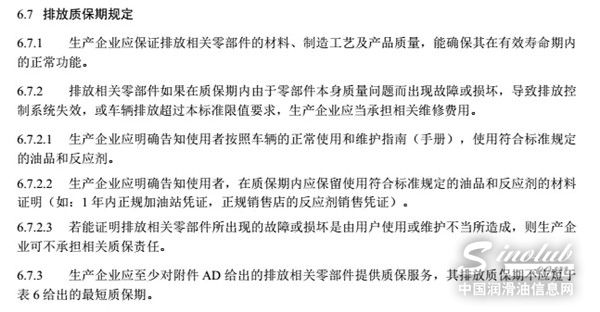 要求生产企业明确告知用户使用符合标准规定的油品和反应剂,在质保期内应保存相关油品反应剂的销售凭证。