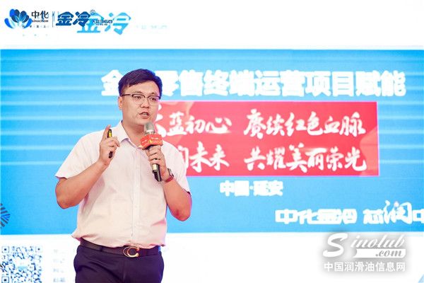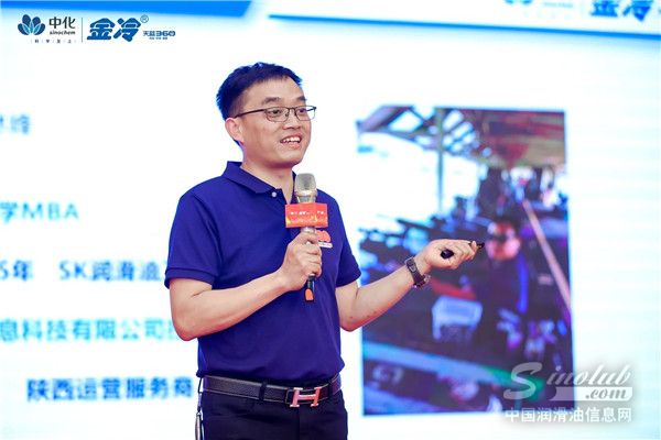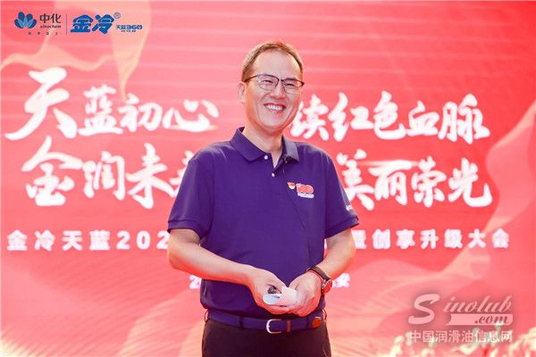 中蓝金冷总经理李俊锋先生致欢迎辞,并现场宣读中化蓝天集团副总经理、西安中蓝金冷董事长于晓岗总手书贺信寄语。于总对金冷家人三年来对金冷润滑油项目的支持表示衷心的感谢,并对大家不远千里前来参会表示欢迎和感谢。