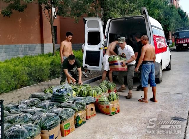 下午,他们又赶到扶沟看望慰问抗洪抢险武警官兵,为他们送去了西瓜3000余斤、绿茶100件等慰问物品。