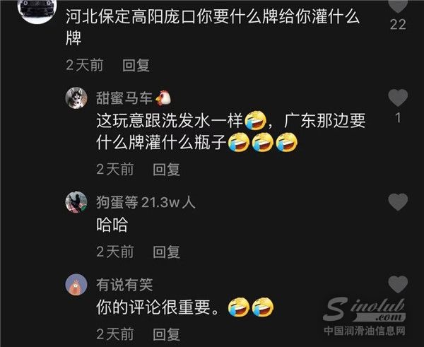 有网友在评论区表示,“现在市面上基本看不到真货”。甚至有网友爆料,某些地方“要什么牌子的油就能给你灌什么牌子的瓶”。此外,许多网友还提到,市面上的“假机油”、“水油”都有一个共同点,那就是大多数通过汽配城或者电商平台销售。
