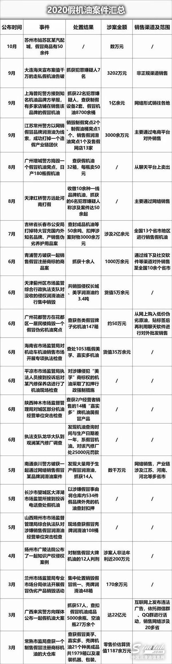 2020年315前夜,广西来宾警方公布:成功侦破“10.17”假冒品牌车用机油案,全链条摧毁了跨省的特大犯罪链条,涉案金额达22亿元,震惊了全行业——这是近年来车用机油领域最大造假案件。经警方调查,该批假机油主要通过互联网销售。而梳理2020年被爆出的多起假机油案件之后,我们不得不承认,网购的确是销售假机油的主要渠道。由于监管不到位、电商平台门槛低、线上销售成本更低,网购俨然已经成了假机油的重灾区。