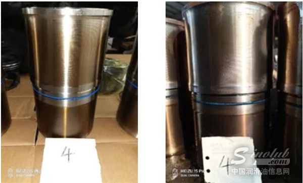 (左图:行车实验前,更换的新的缸套,表面光滑无穿孔;右图:行车试验后,未见明显腐蚀,表面依旧光滑)