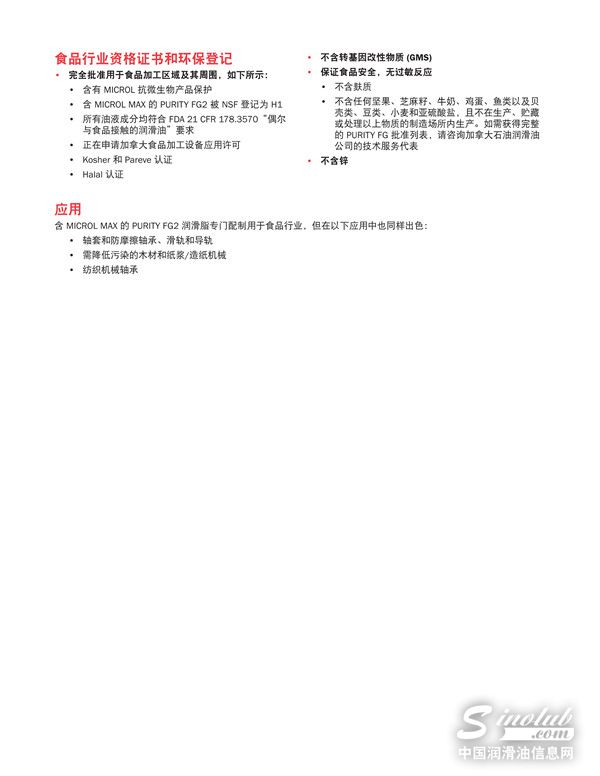 食品级抑菌型润滑脂Purity FG2 with Microl Max能够帮助生产企业控制产品的细菌含量,提高产品品质。
