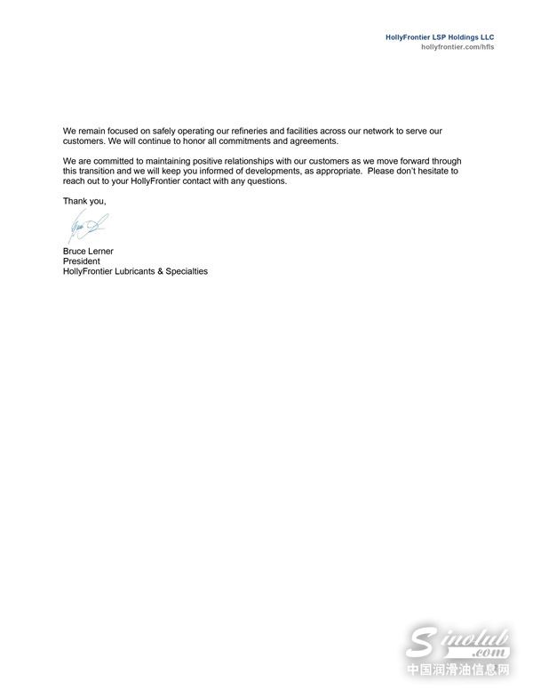 最重要的是,霍利仍将持续关注加拿大石油润滑剂公司、Sonneborn、Red Giant Oil和霍利特种产品这些品牌的巨大价值。此次交易不会影响母公司与品牌之间的合作方式,双方仍将继续履行承诺与协议。