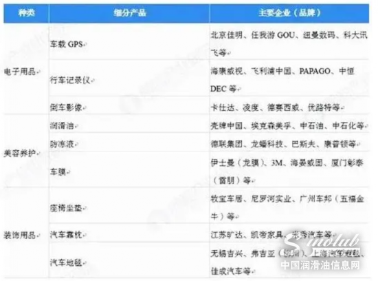 图表2:中国汽车用品细分产品主要企业(品牌)