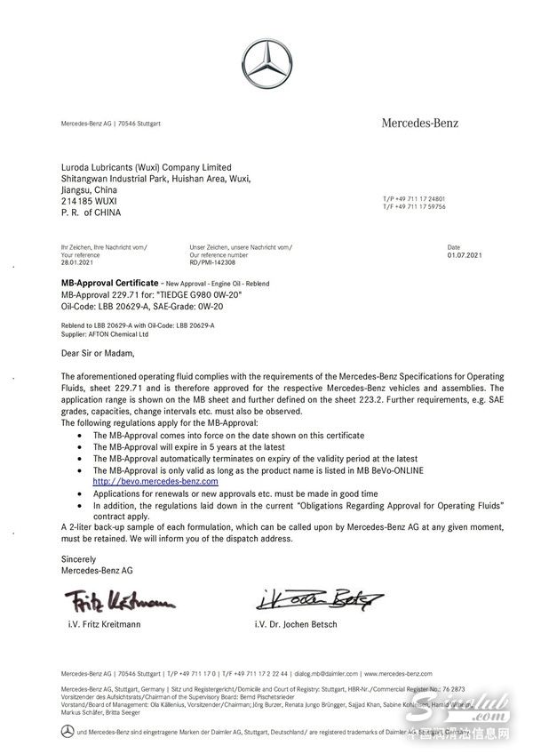 如果说MB认证被誉为润滑油标准认证的皇冠,MB-Approval 229.71最高认证则是皇冠上的明珠。