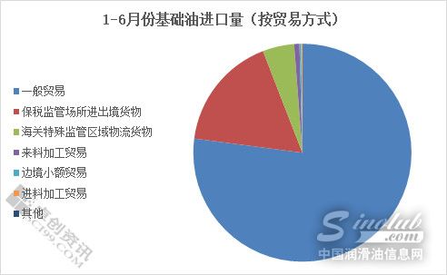 从贸易方式来看,上半年国内进口基础油以一般贸易居首,保税监管场所进出境货物及海关特殊监管区域物流货物分别排名二、三位。据卓创资讯数据统计,上半年一般贸易模式进口基础油数量在98.69万吨,占总进口量的77.07%;保税监管场所进出境货物21.82万吨,占进口总量的17.04%;海关特殊监管区域物流货物5.98万吨,占比4.67%。