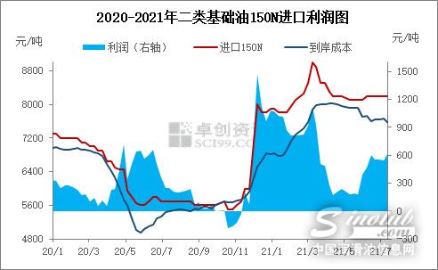 据卓创数据测算,2021年上半年,进口150N理论利润在599.8元/吨左右,同比大幅上涨75.01%。进口资源较少,到港船只有限,贸易商惜售情绪浓厚,上半年进口资源市场售价可观,利润空间增大。