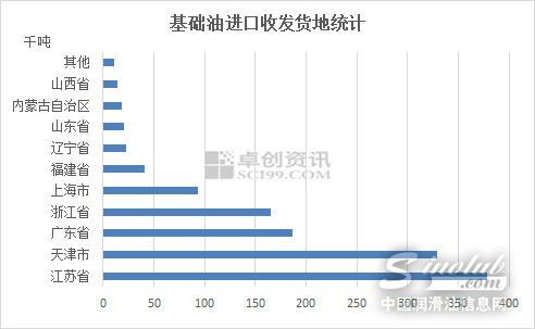 国内润滑油调和厂主要集中在华东、华北、华南,基础油进口到港集中在需求地。海关数据显示,目前基础油进口到港主要集中在江苏、天津、广东东莞等地,江苏基础油到港量占全部进口的29.54%,天津到港量达25.69%,江苏与天津到港总量占据基础油进口市场的半壁江山。