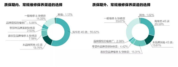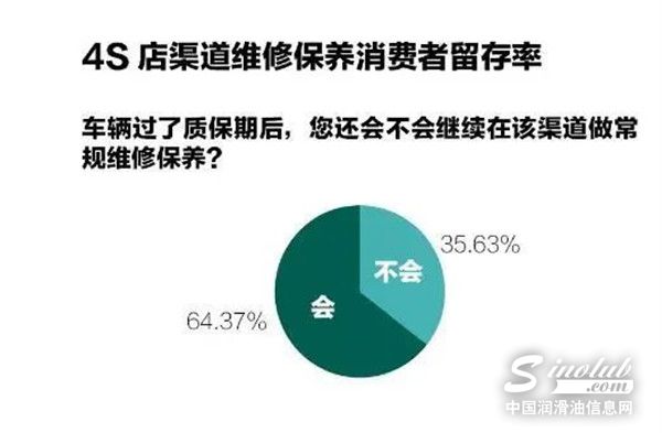 而质保期内在4S店做维修保养的受访者中,有35.63%会在质保期后离开4S店,选择其他渠道。