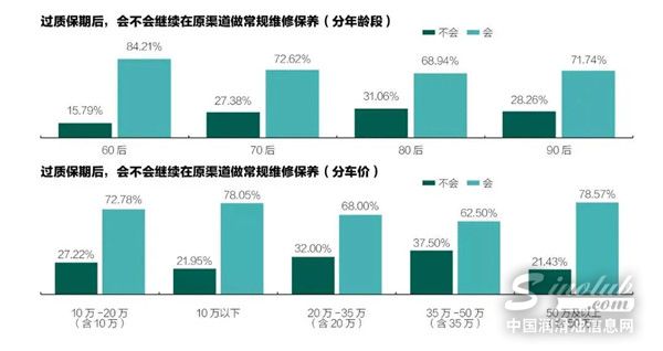 调查同时对质保期内外的受访者,从城市、车价、车辆类型等多维度对常规维修保养渠道进行系统分析。