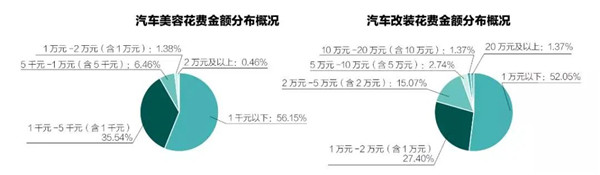 汽车改装方面,调查显示有11%的受访者做过汽车改装项目,其中,花费金额1万元以下占比52%,1万元-2万元(含1万元)占比28%,随着改装项目日渐繁多,有15%的受访者花费金额达2万元-5万元(含2万元)。