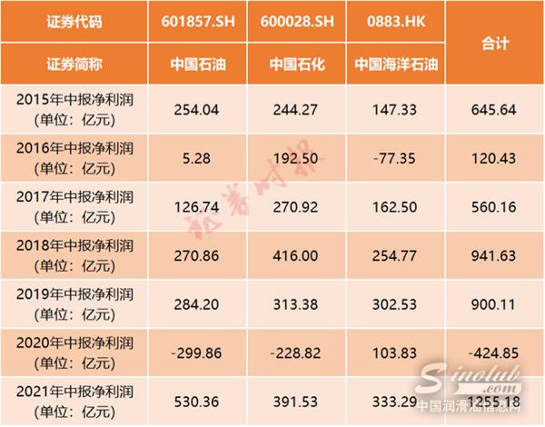 昨日,“三桶油”最后一家中国石化也公布了2021年半年业绩。最终,“三桶油”以总盈利超1200亿元,总产量超12亿桶油当量,创近七年以来同期最好水平。