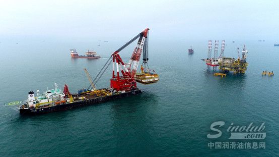 图为秦皇岛32-6电力动力平台组块安装