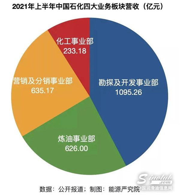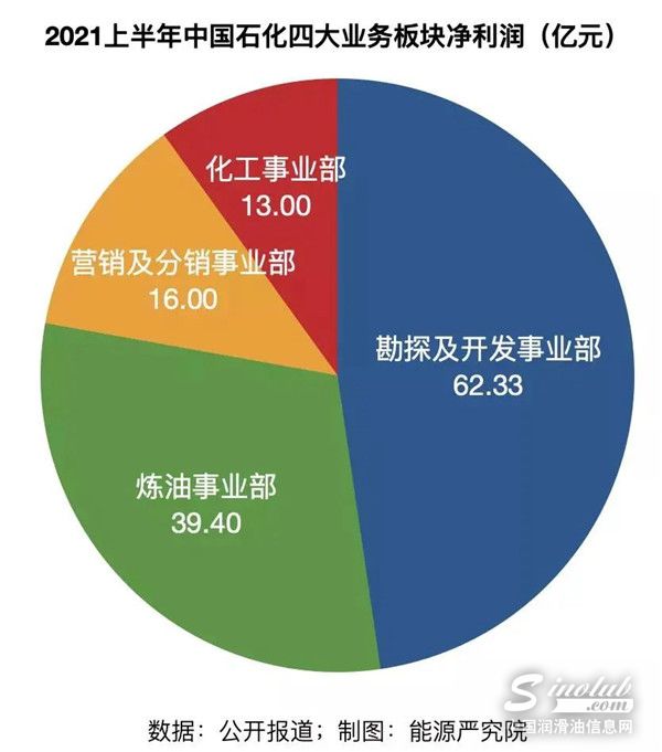 数据显示,2021年上半年,中国石化勘探及开发事业部、炼油事业部、营销及分销事业部、化工事业部的收益分别是62.33亿元、39.4亿元、16亿元、13亿元。