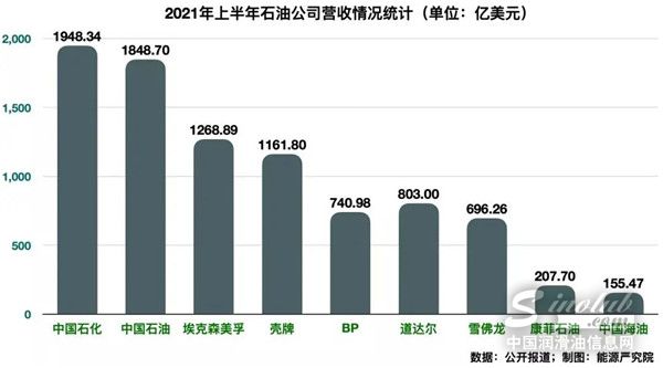 从全球范围来看,今年上半年,中国石化和中国石油(601857.SH)的营收位列前两名,分别达到1.26万亿元和1.2万亿元,分别折合1948.34亿美元和1948.7亿美元。