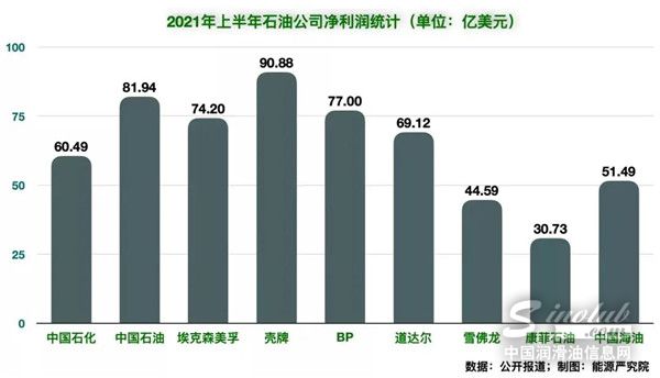 从净利润指标来看,壳牌才是最赚钱的石油公司。2021年上半年,壳牌实现净利润90.88亿美元。排名第二的则是中国石油,达到81.94亿美元。