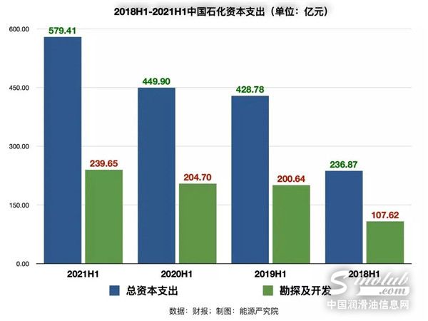 以中国石化为例,今年上半年,该公司的资本支出创造了同期新高,达到579.41亿元。其中,用于勘探及开发的支出达到239.65亿元,占比41.36%。
