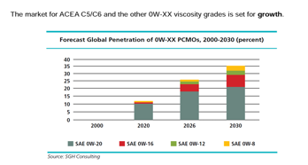 Richard van den Bulk:在欧洲市场, 2008年之后所有新车都安装了尾气后处理系统(GPF), 距今已有13年之久。其中,很多德系OEM规范是建立在C3的基础之上的;法系OEM以及包括福特和通用的欧洲规范是建立在C2的基础之上的,所以我认为目前市场主流是C2和C3的中灰产品,我认为亚太市场有着相同的趋势,C2以及C3的市场在快速增长。另外,C5 0W-20在欧洲会用于2015年后生产的发动机,现在它正成为一个相当重要的市场,并在逐步增长。我认为亚太地区也会向这种趋势发展。目前,中国已经制定了非常严厉的燃油经济性法规,这也将推动润滑油技术向更低粘度的趋势发展。因此,C2、C3 和 C5 将是最重要的市场。当然,新增加的C6也是一个值得关注的规范,尤其是新增加的LSPI台架测试要求,会为现代新型发动机提供充足的保护。