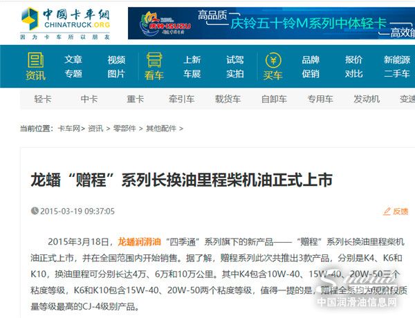 从初上市的CJ-4等级,到如今的CK-4;从赠程K10的10万公里换油,到赠程K15的15万公里超长换油周期,龙蟠赠程深耕长换油里程领域,历经多次产品线扩张和性能升级,牢牢占据商用车高端润滑油市场的优势地位。