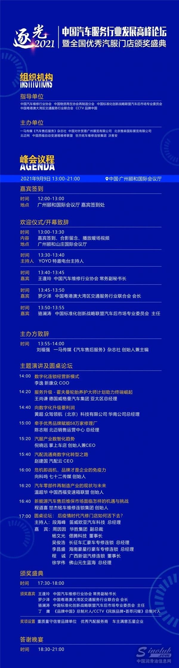 中国汽车服务行业发展高峰论坛暨全国优秀汽服门店颁奖盛典,2021年9月9日在广州颐和国际会议中心盛大举办!