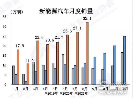 8月,新能源汽车产销分别完成30.9万辆和32.1万辆,同比均增长1.8倍。其中纯电动汽车产销分别完成25.2万辆和26.5万辆,同比均增长1.9倍;插电式混合动力汽车产销均完成5.6万辆,同比分别增长1.4倍和1.7倍;燃料电池汽车产销分别完成40辆和38辆,同比分别下降58.8%和68.6%。本月新能源产销继续刷新记录。从细分车型来看,纯电动汽车、插电式混合动力汽车的产销也均刷新记录。